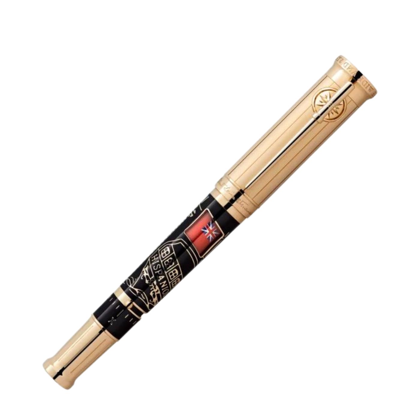 La Montblanc Writers Edition Homage to Robert Louis Stevenson è dedicata a questo narratore estremamente creativo. Molti dettagli decorativi di questa edizione sono ispirati al romanzo “L’isola del tesoro”. La forma complessiva dello strumento da scrittura, unita agli anelli sul cono, ricrea l’effetto di uno storico cannocchiale allungabile. Questa edizione ripropone la storia de “L’isola del tesoro”, e presenta la celebre Hispaniola sul corpo dello strumento da scrittura, incastonata in pregiata lacca nera. La Hispaniola prende il largo sventolando un vessillo britannico dietro a una finestrella. Ripercorrendo la storia dell’ammutinamento dei pirati, è possibile ruotare il vessillo tramite una piccola manopola per rivelare una bandiera dei pirati.