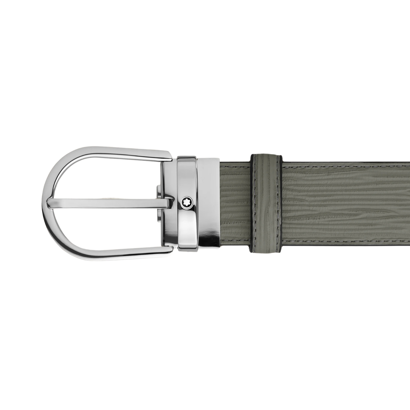 Trasforma ogni outfit in una dichiarazione di stile con questa cintura da 35 mm in pelle grigio medio decorata con un motivo a corteccia stampato unico e una fibbia ad ardiglione a ferro di cavallo finitura palladio lucido.