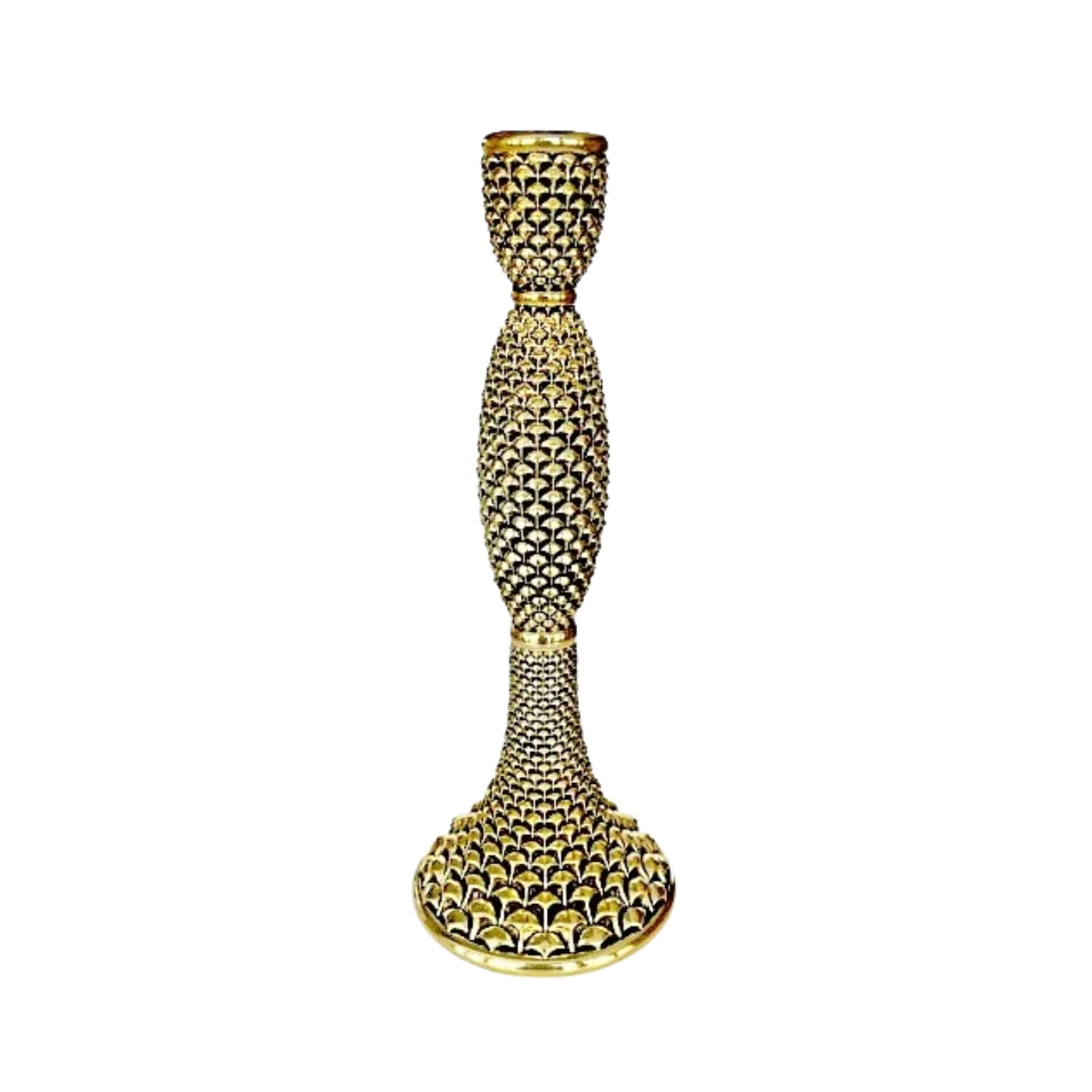 Portacandela argenti sovrani motivo pigna in resina rivestita oro
