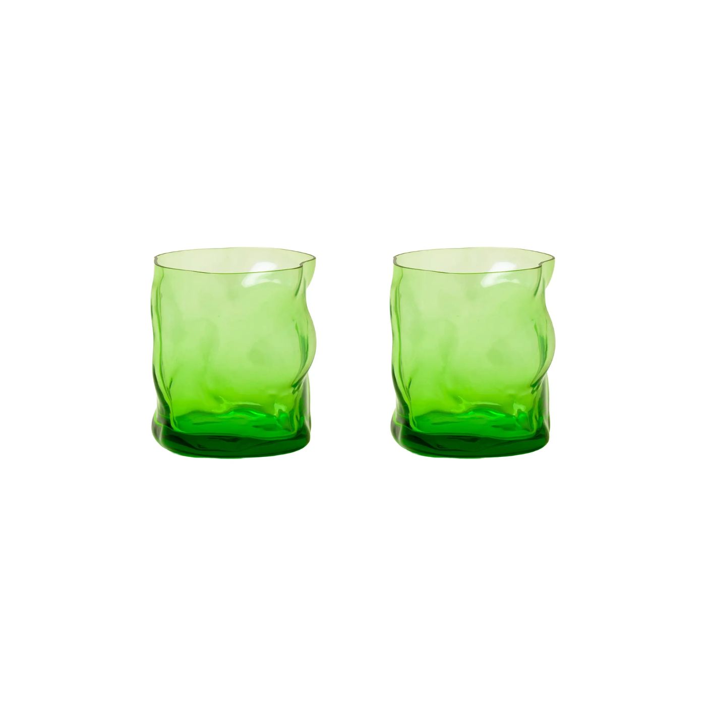 Le linee scorrono libere, le superfici vibrano come scaglie cristalline scolpite dalla natura, i colori si accendono in tonalità vive e trasparenti. Ogni bicchiere è diverso dall’altro, un frammento irripetibile che porta con sé la libertà dell’imperfezione e l’anima del gesto artigianale.