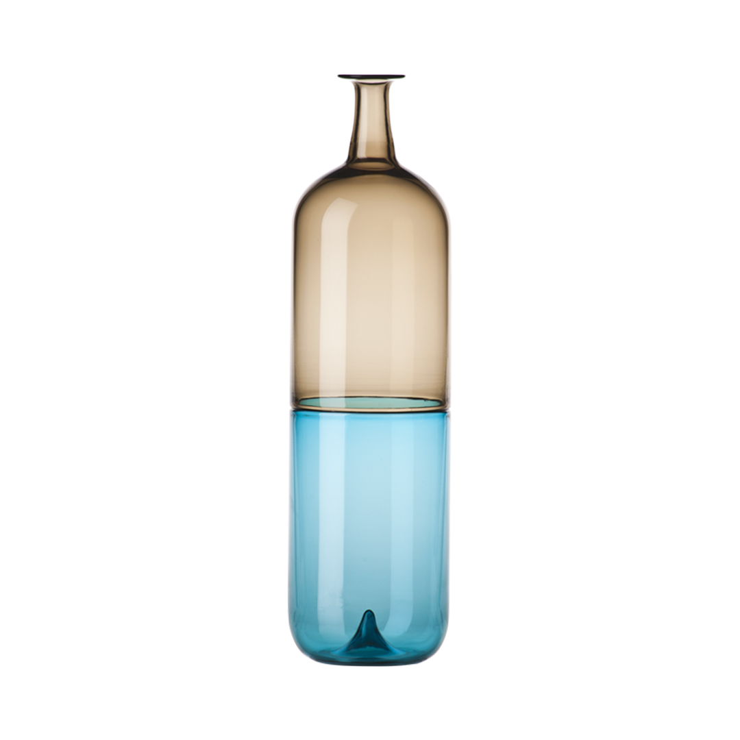 “Il vaso è bottiglia per Tapio Wirkkala. Talpa e Adriatico I due luoghi cromatici distinti sono uniti fisicamente con la tecnica dell'incalmo, l'accoppiatura a caldo di due forme soffiate.”