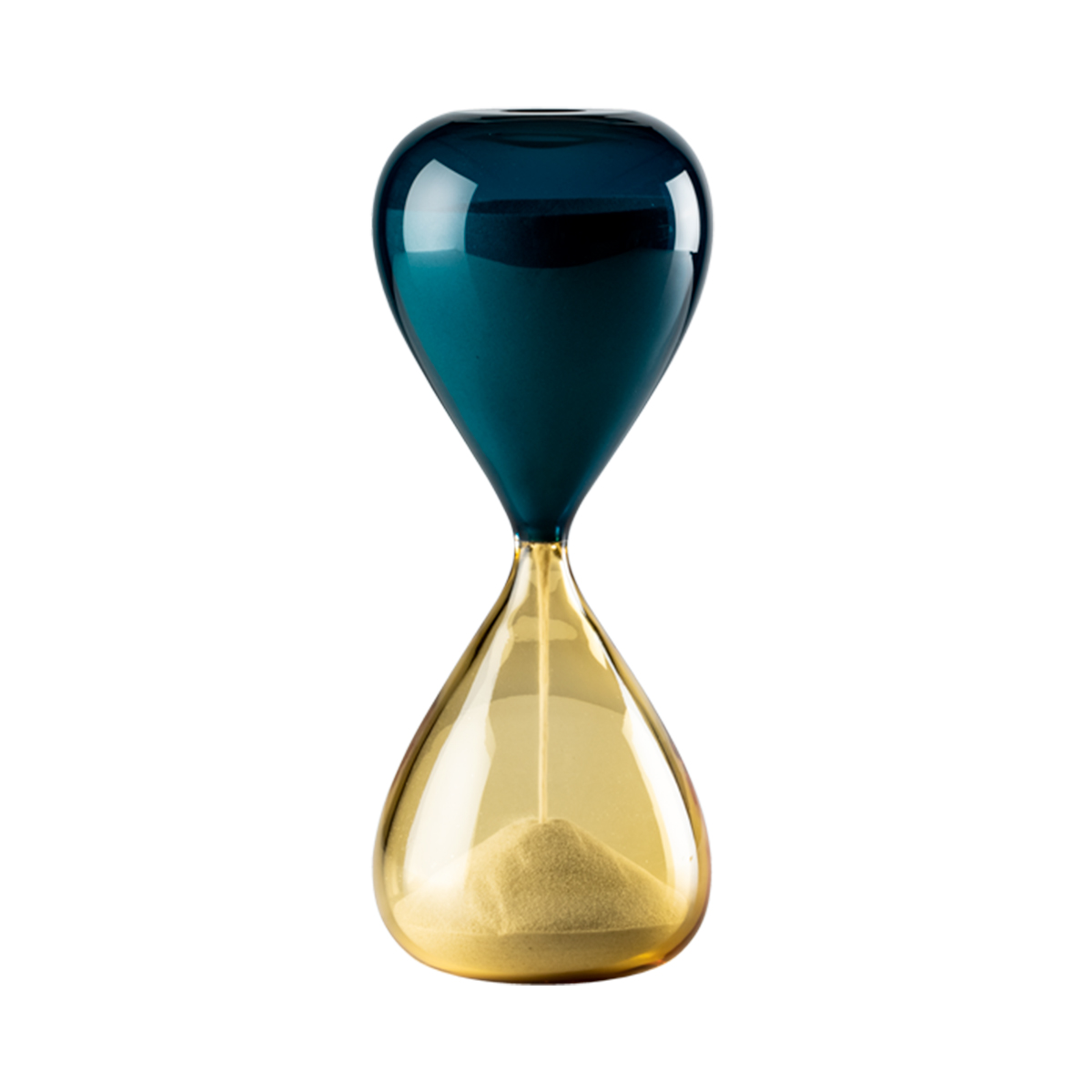 ““Granelli di sabbia impalpabili e impercettibili nell'insieme, eppure così presenti, come il tempo che passa. Fulvio Bianconi e Paolo Venini l'hanno impresso nella Clessidra nel 1957. In perfetto equilibrio tra due cromie diverse, la sabbia attraversa i soffi di vetro slanciati, generati con la tecnica Incalmo, assumendone il colore e diventandone parte.””