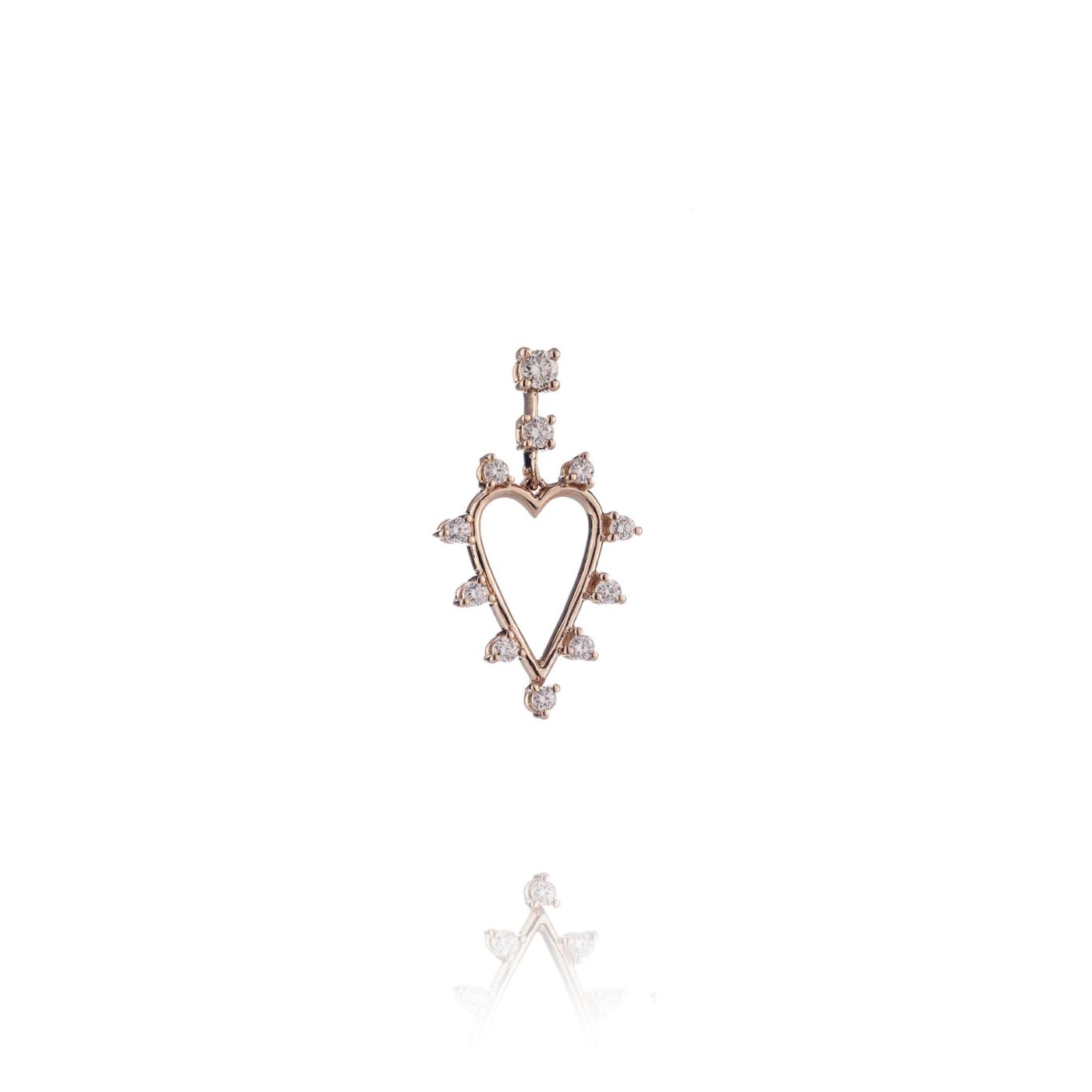 Mono orecchino cuore open in oro rosa 9kt e diamanti 0.18ct.
