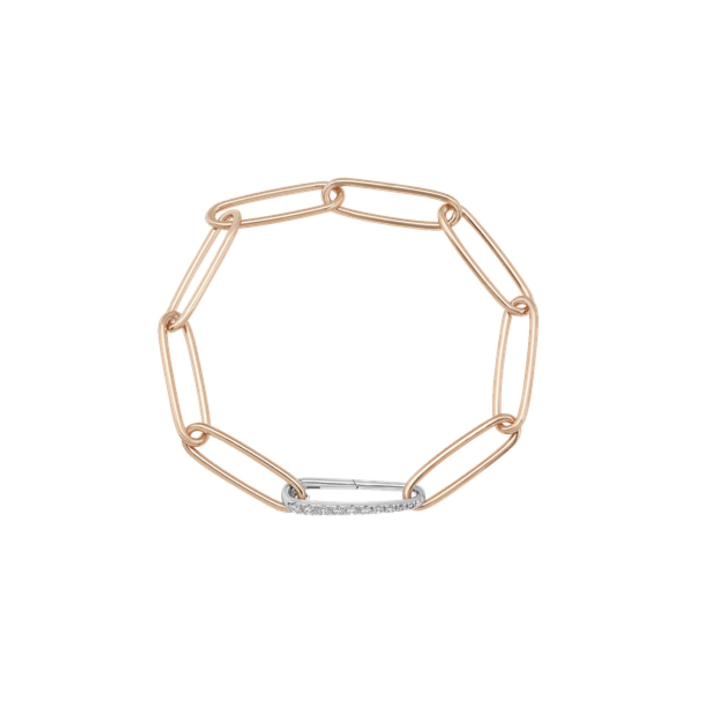 Bracciale maglie ovali 18cm in oro rosa e bianco 18Kt con chiusura in diamanti