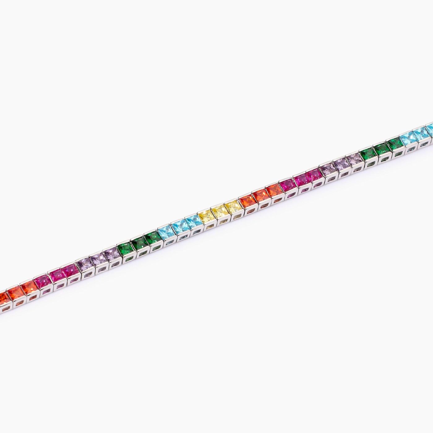 Bracciale tennis regolabile da donna in argento rodiato con zirconi multicolor taglio princess.