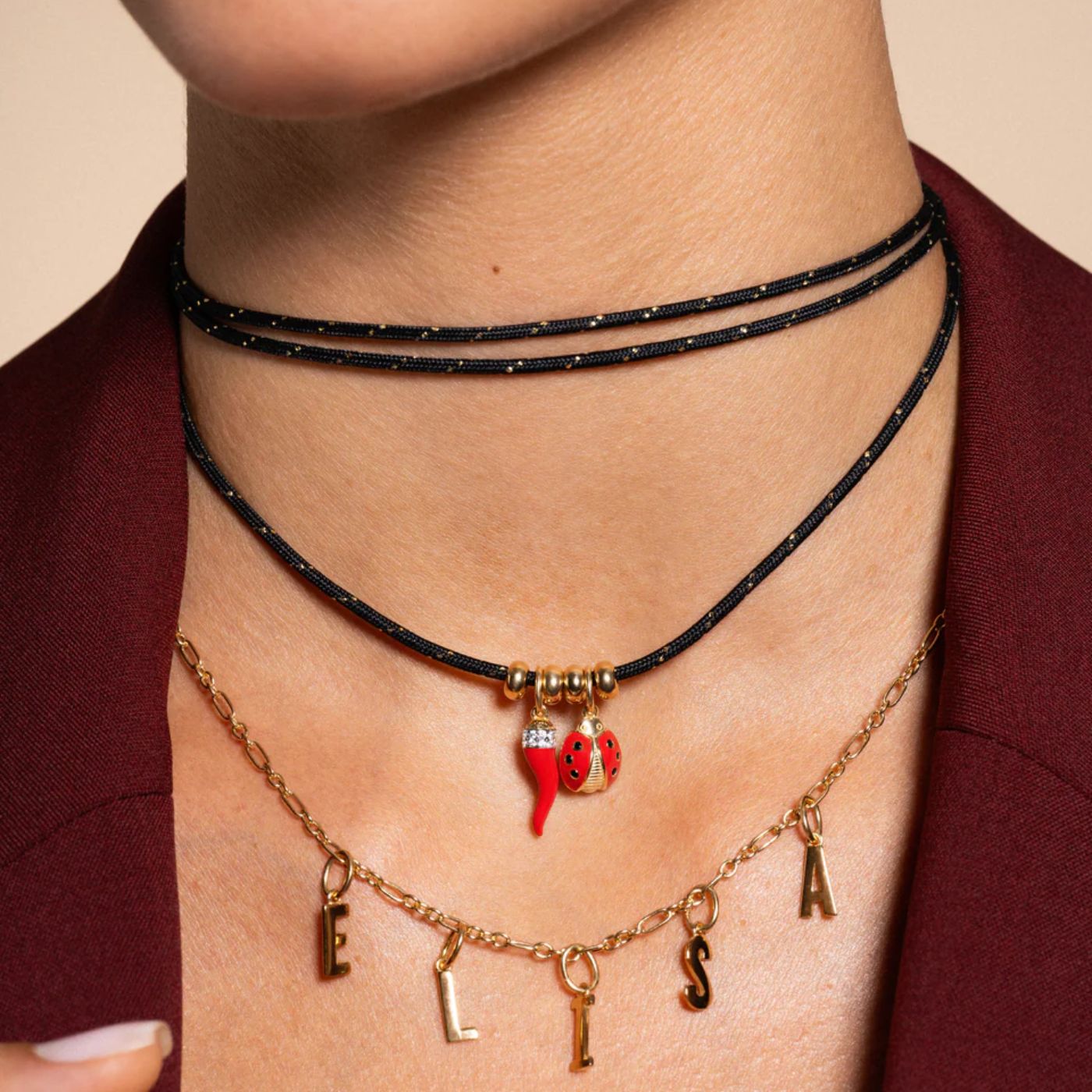 Il girocollo No Closure è un accessorio contemporaneo e multi-indosso, realizzato in morbido cordoncino, disponibile in nero o burgundy, senza chiusura. La sua versatilità consente di indossarlo in diversi modi: avvolto più volte attorno al collo, annodato con un fiocco elegante, portato come una cravatta dal carattere deciso oppure trasformato in un originale braccialetto. Un gioiello semplice e raffinato che lascia spazio alla creatività e si adatta a ogni stile.