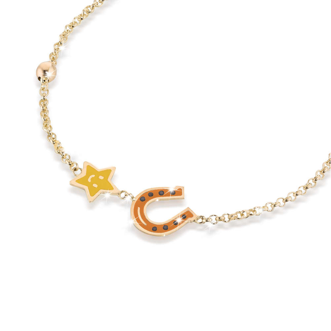 Bracciale in Oro Giallo 9 Kt con Ferro di Cavallo e Stella smaltati.