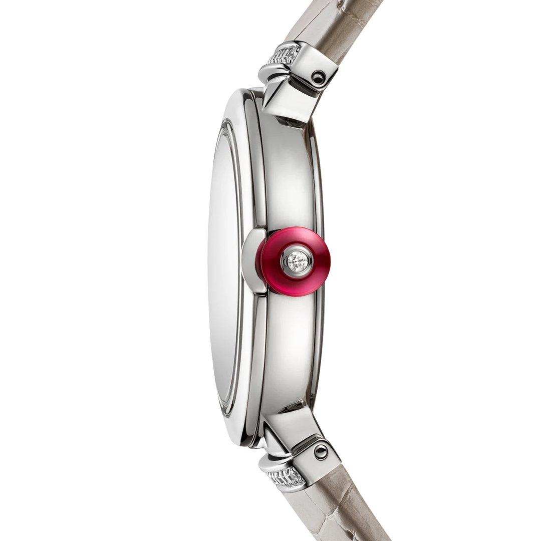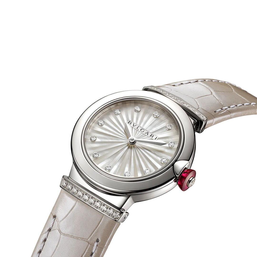 Illuminando il tempo con la sua radiosa e femminile eleganza, l’orologio Lvcea dona un tocco di glamour allo stile di ogni giorno. Con la perfetta simmetria e la purezza delle sue linee, l’orologio evoca l’eterna bellezza di Roma, dando vita a un sofisticato connubio tra classico e contemporaneo. Unendo alle audaci geometrie del design lo splendore di preziosi diamanti, Lvcea celebra il potere della luce attraverso lo straordinario decoro del quadrante. Un emblema dell’eccellenza dell’orologeria svizzera e della maestria di Bvlgari nell’arte della gioielleria.