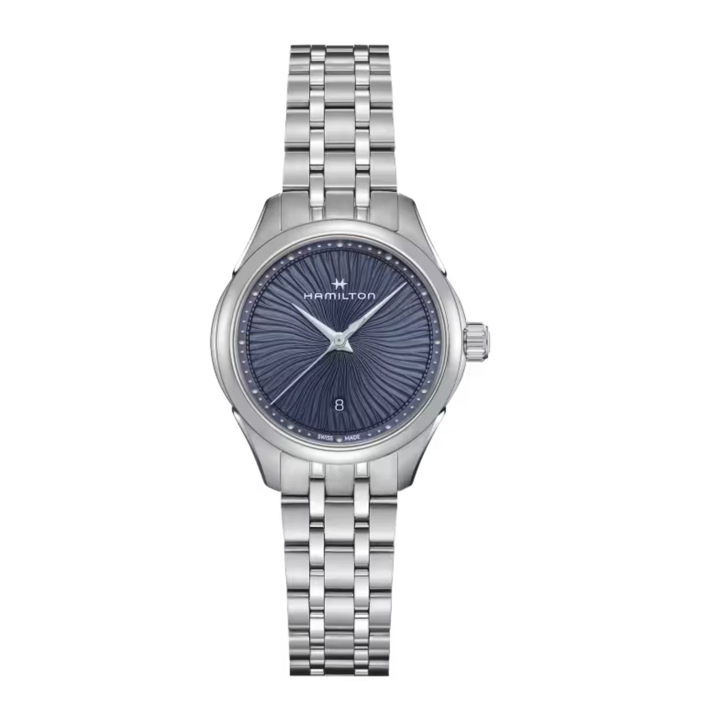 Le linee aggraziate creano l’illusione di un movimento sul quadrante bianco argenté, blu notte e nero velluto del nostro Jazzmaster Lady Quartz. Abbinato a un elegante bracciale o a un morbido cinturino in pelle, questo sofisticato segnatempo sublima ogni look.