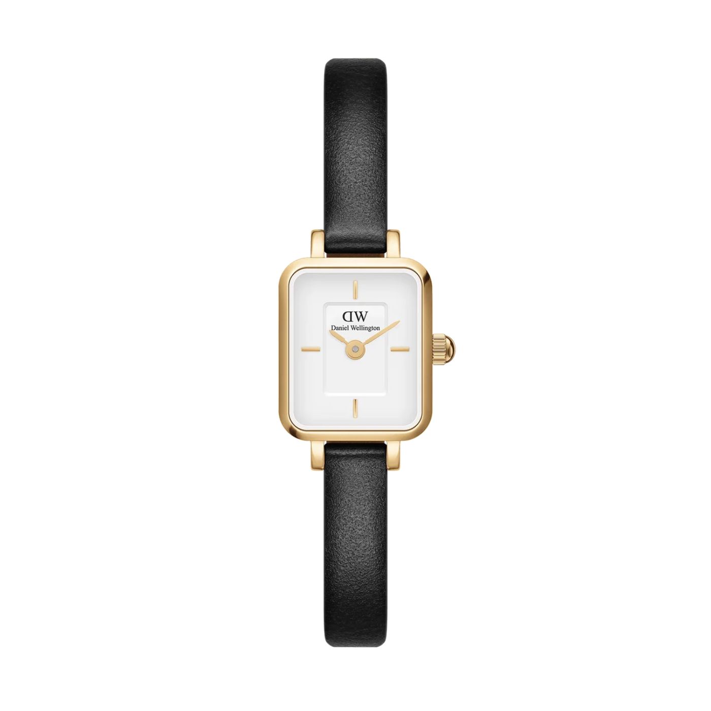 I raffinati angoli di Quadro sono stati ulteriormente ridotti per trasformarlo nel nostro orologio più piccolo di sempre. Questa versione dorata di Quadro Mini vanta un cinturino nero intercambiabile in autentica pelle.