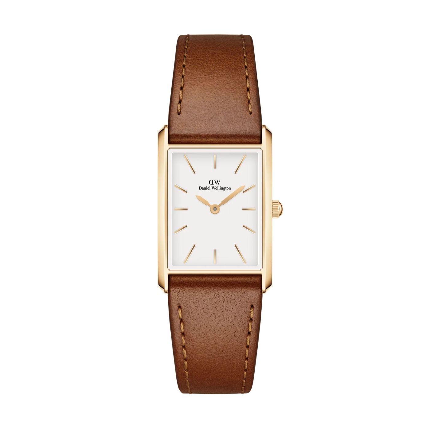 Grazie al loro profilo geometrico slanciato e due taglie da scegliere, gli orologi della collezione Bound esprimono una perfetta simmetria da indossare al polso. Questo orologio di color oro vanta una scocca curvata di forma rettangolare che si abbina alla larghezza del suo cinturino in pelle marrone con trama di coccodrillo, creando così un quadrante perfettamente integrato.