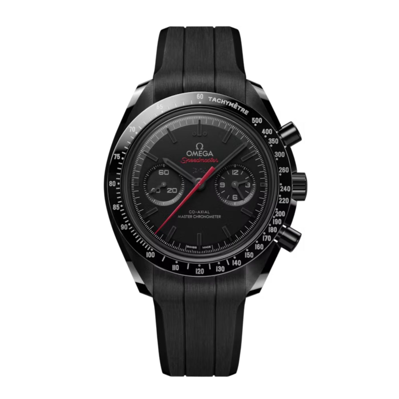 Omaggio alla tradizione di OMEGA nel campo delle esplorazioni spaziali, questo Speedmaster Dark Side of the Moon vanta una cassa da 44,25 mm in ceramica nera lucida e spazzolata. Anche la lunetta lucida è realizzata in ceramica nera e presenta una scala tachimetrica in Liquidmetal™.