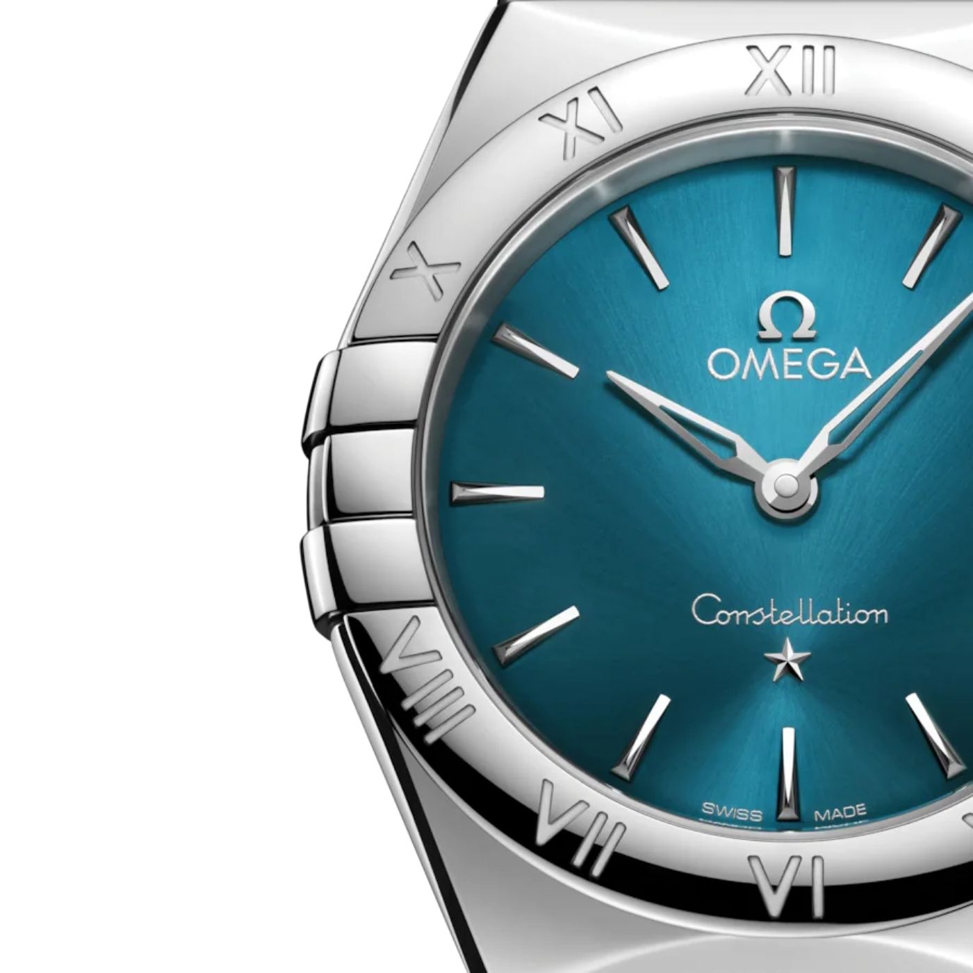 Unione di stile raffinato e precisione stellare, l’iconico Constellation di OMEGA è caratterizzato dalla celebre cassa con sfaccettature a mezzaluna e griffe lucide ai lati.