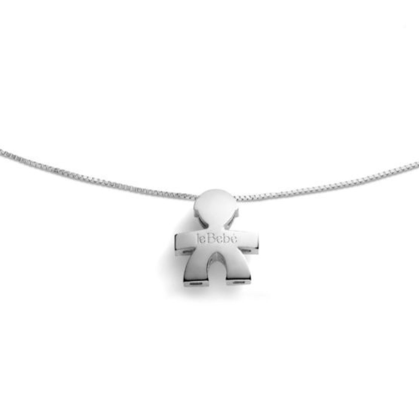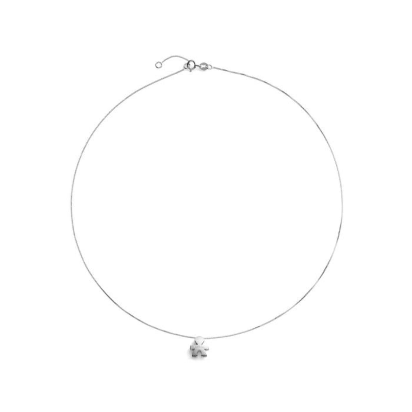 Ciondolo con catena sagoma bimbo in oro bianco 18kt.